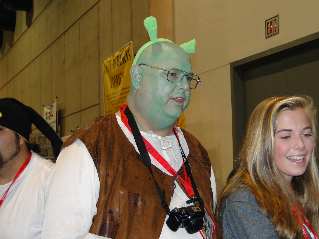 My feet are aching, my hair looks like Chaka Kahn from all the humidity and body heat, and I just saw a guy in a bathrobe running down a hallway yelling, “I’m with Superman!” Must be Thursday at Comic Con in San Diego.