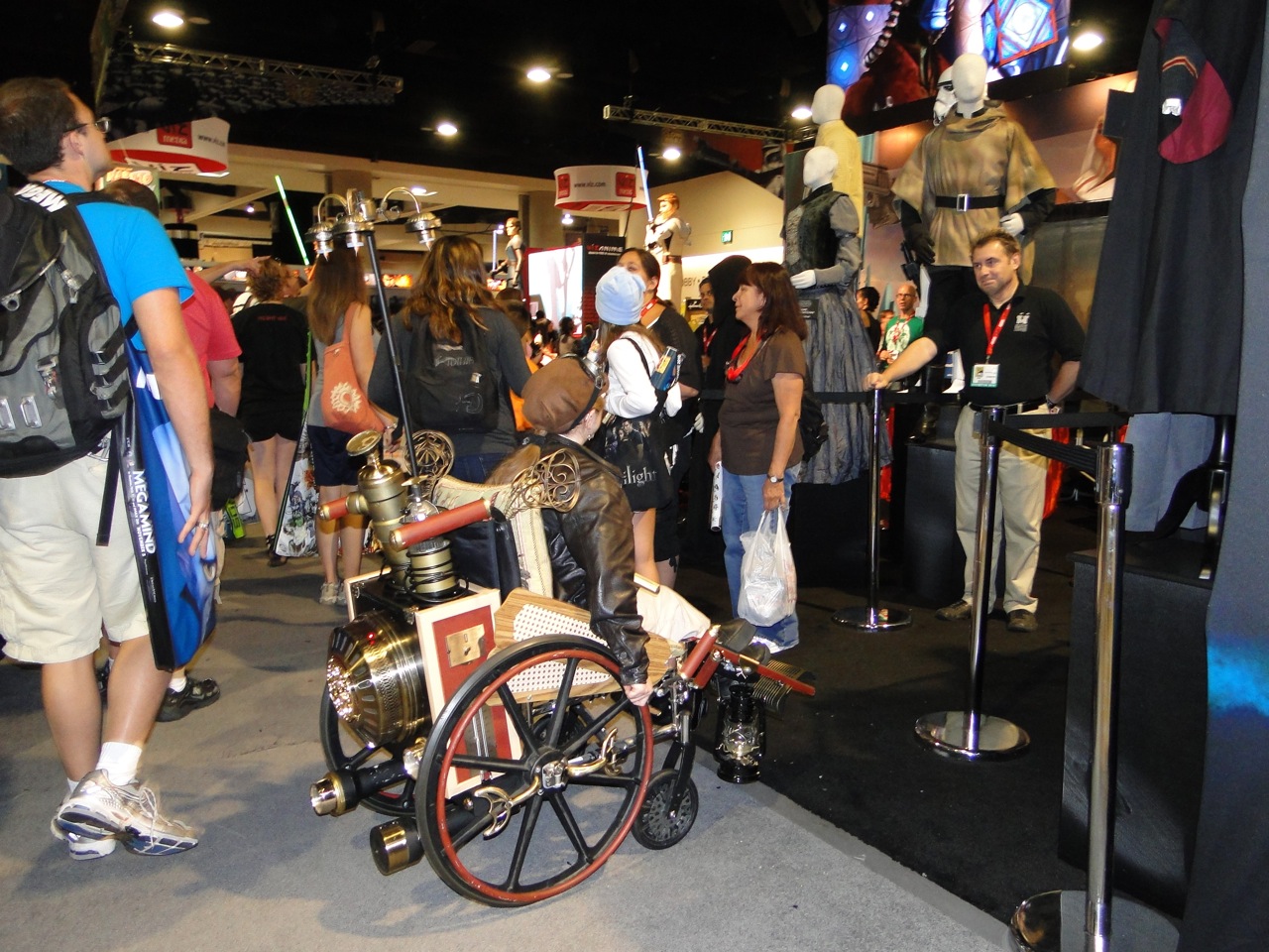 The Convention Center is daunting–it feels like it’s the size of the entire Denver airport. The various booths are colorful, but they’re really a backdrop for cool geeks of all kinds to let their geek flags fly and show up in full costume. I actually enjoyed a lot of the fans in costumes more than some official events and I was surprised at how overwhelmingly friendly everyone has been. Far from the pompous atmosphere of a Hollywood event, the Comic Con fans are happy just being themselves–even if they are wearing a Darth Vader mask.